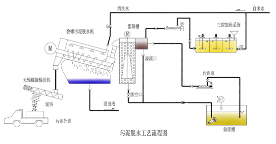 2.机体设计紧凑,浓缩脱水一体化,本身带有电控柜和污泥絮凝混合槽等辅助装置,对配套设备兼容性强,便于设计。